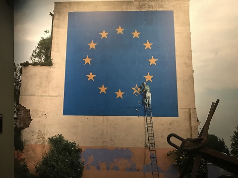 2017年イギリスの英仏海峡に面した港町ドーバーに現れた、イギリスのEU離脱の議論を風刺した絵。