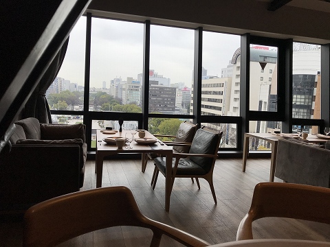 ■部屋数14室のホテルなので、最大でも14組だけの展望台という贅沢さ。今日は3組しかいませんでした。 |