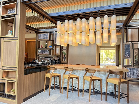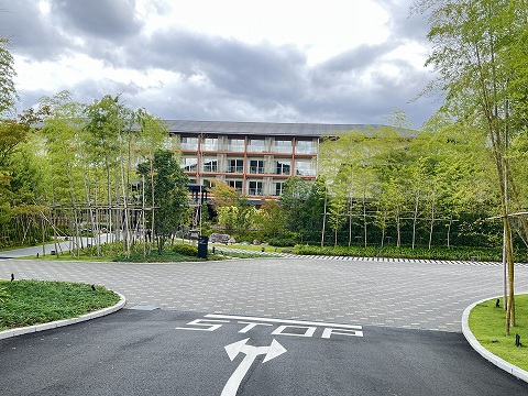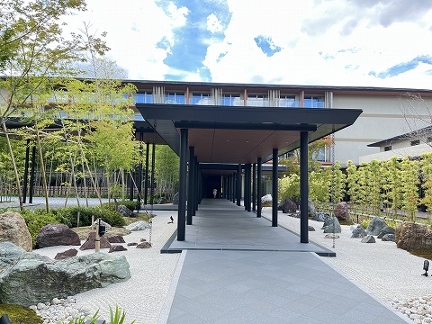 エントランスは石庭を意識したような造りです。計画段階ではコロナもなく、インバウンドを取り込むための設計なのかなと思いました。