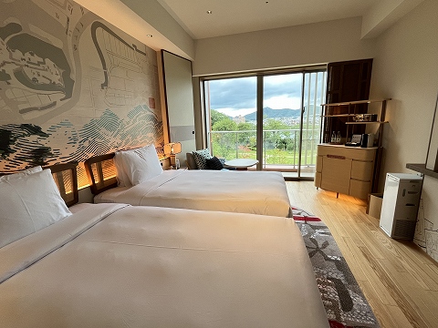 スイートを除き、部屋の広さやデザインは同じ(ベッドがダブルかツインかの違いはあり)で、部屋からの眺めで値段が変わります。価格が安い方から、スタンダード、有楽苑ビュー、木曾川ビュー、犬山城ビューです。