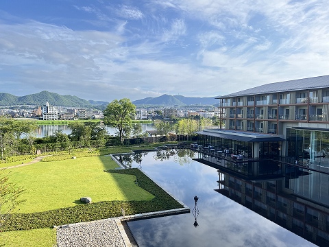 今回眺めはこだわらないのでスタンダードを予約していたのですが、木曾川ビューにアップグレードされました。写真に見える建物の部屋は犬山城ビュー。