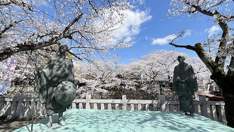 ■左側の桜は根尾の淡墨桜を枝分した桜だそうです。 |