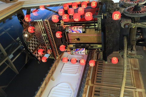 ■江戸時代の最盛期には、絢爛豪華な16台の山車が練り歩きました。現在は4台が練り歩き、そのうちの2台がこの会館に展示してありました。 |