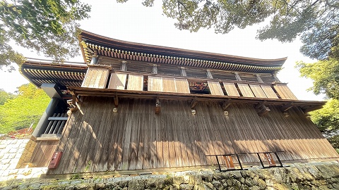 このお堂は傾斜地に建てられた懸造りになっています。