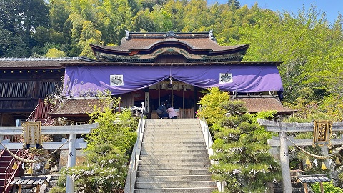 本殿は秀吉が伏見城内に建てた日暮御殿の一部を豊臣秀頼が神殿として寄進したものと伝えられています。