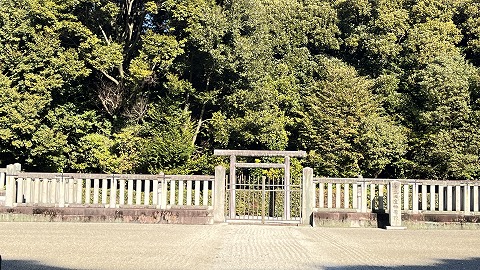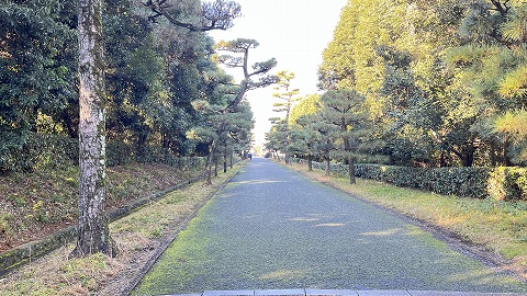 歩き始めて10分ほどすると、車両通行禁止の「宮内庁」と書かれた注意書きのある道になりました。