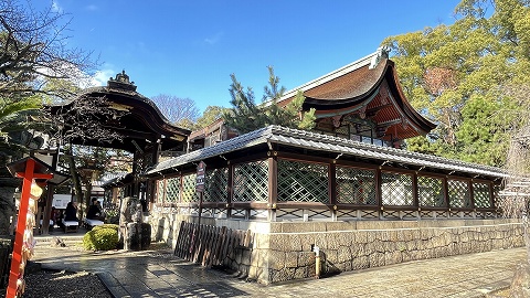 1868年に起こった鳥羽・伏見の戦いでは、官軍(薩摩藩)の本営となり、眼下にあった幕府軍(会津藩・新選組)の本営・伏見奉行所を砲撃して陥落させました。神社の建物は無事でした。
