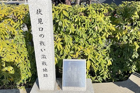 「鳥羽・伏見の戦いで、大坂から船で来た会津藩兵がここ京橋に上陸し戦い、幕府軍が火を放ちながら淀方面へ敗走したので、このあたりの多くの民家が焼かれました」という旨が書いてあります。