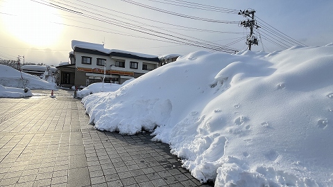 ◆大石田駅前には除雪した雪が積まれていました。 |