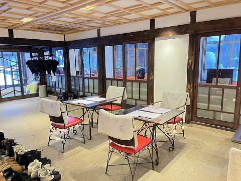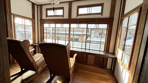 ◆玄関の上のスペースは2・3階ともに温泉街を眺められる場所になっていましたが、暖房がなく寒かったです。 |