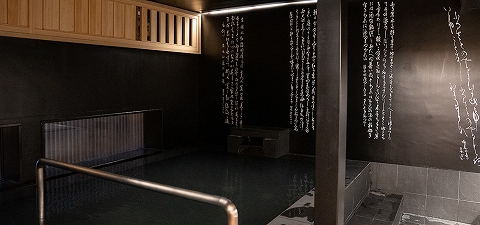 ◆書をモチーフにした「黒」のお風呂。 |