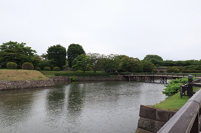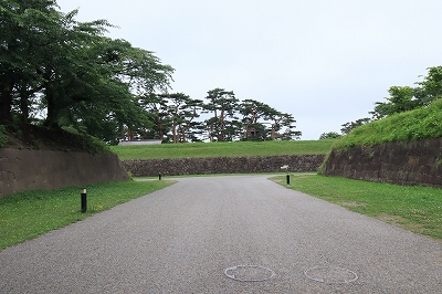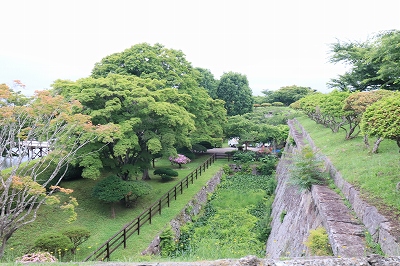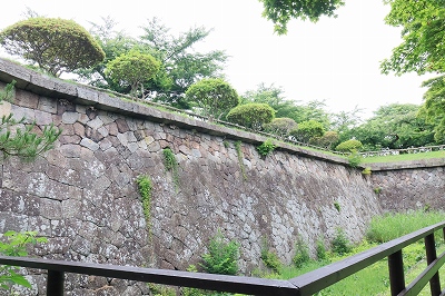 表門から入ったところの石垣も「刎ね出し」になっています。 |