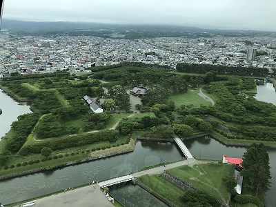 近くの五稜郭タワーに登って上から見た五稜郭。 |