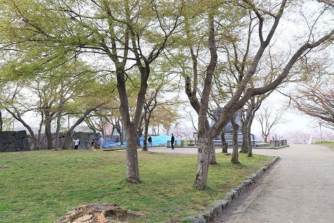 木の向こうに見えるのは、最後の盛岡藩主の長男である南部中尉が日露戦争で戦死し、その銅像の台座です。太平洋戦争中の金属類回収令で銅像が供出されて以降、戦後も復元される事なく台座のみ残されているそうです。