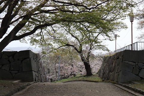 このあたりの石垣は盛岡城で最も古い石垣と考えられ野面積みです。