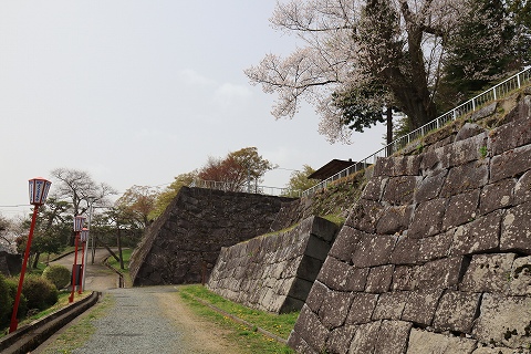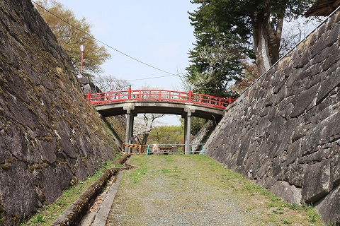 本丸の北側に二の丸が配され、本丸と二の丸の間は空堀で仕切られ現在は朱塗りの橋が架かっているが、存城当時は廊下橋が架けられていました。さらにその北側に三の丸が配され、本丸を囲むように腰曲輪、淡路丸、榊山曲輪が配されていました。