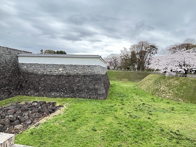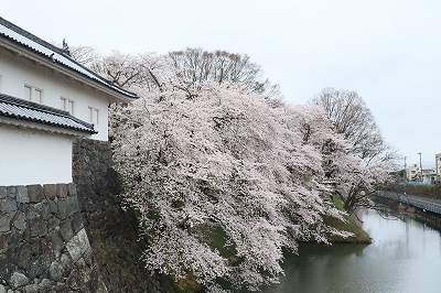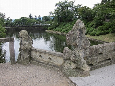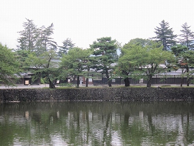 お堀の向こうに見えるのが、二の丸跡に建つ旧・上杉伯爵邸。 |