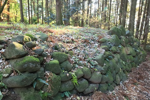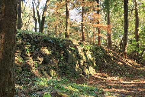 大堀切土橋の石垣。 |