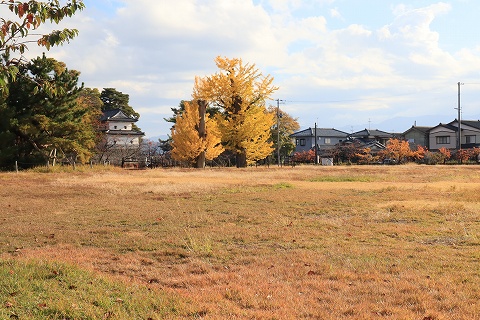 本丸西側の二の丸は新発田城址公園になっています。本丸北側の二の丸は自衛隊の敷地で、南側は住宅地でした。