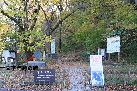 熊出没注意の看板があります。2か月ほど前、城址内は熊がいたため封鎖されていました。