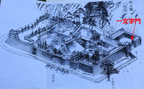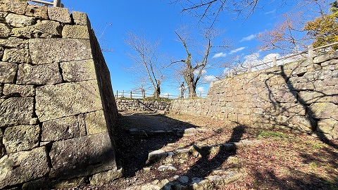 村上城最大の防御拠点で、大手道と搦め手道の合流地点を、出櫓付随の黒門で抑えることで本丸への敵の侵入を防ぎました。