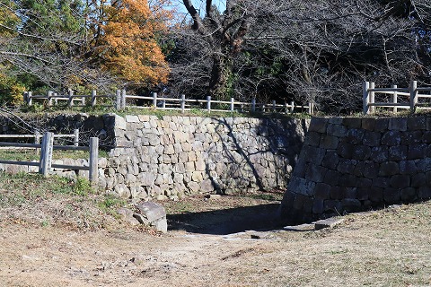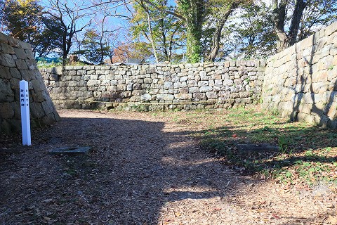 二の丸から本丸の帯曲輪に渡る土橋があり、帯曲輪の手前に薬医門がありました。