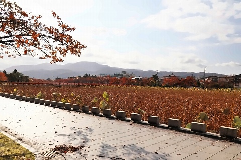 今は蓮がいっぱいで、夏は花が咲いて見事だそうです。