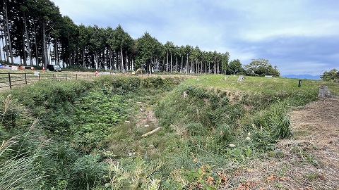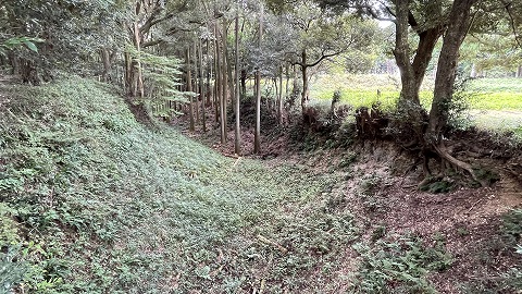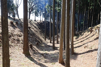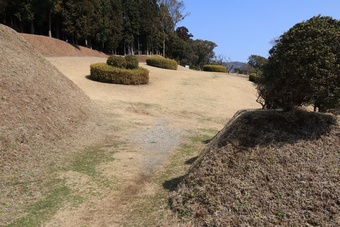 二の曲輪を仕切る土塁。 |