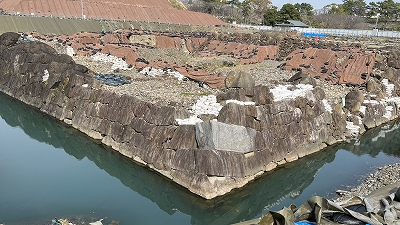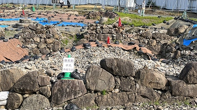 南西隅の石垣は地震で崩れ、積み直していると思われるそうです。 |