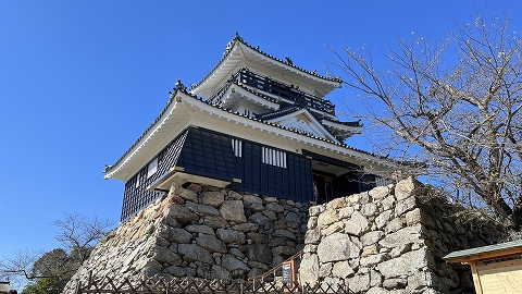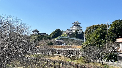 大手橋から見た掛川城天守。 |
