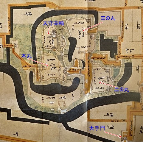 天守から見た二の丸御殿。 |