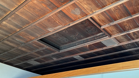 藩主の居間として使われた長囲炉裏の間の天井。 |