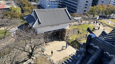 天守から見た天守門。 |