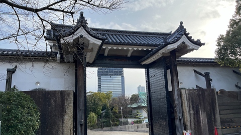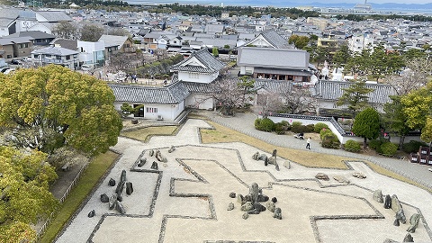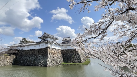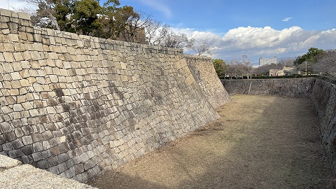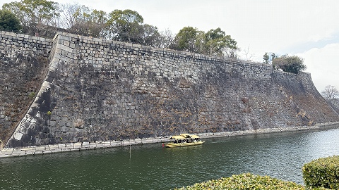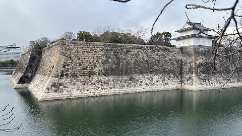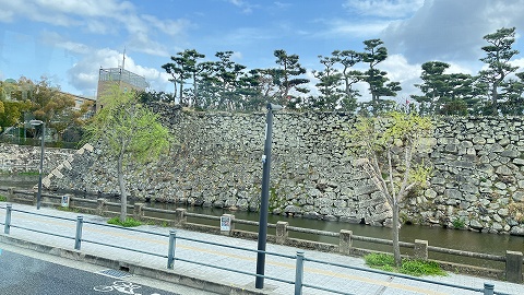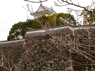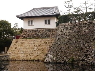 一番櫓(国の重要文化財)と南外堀の高石垣。 |