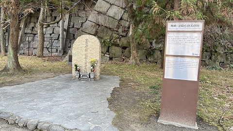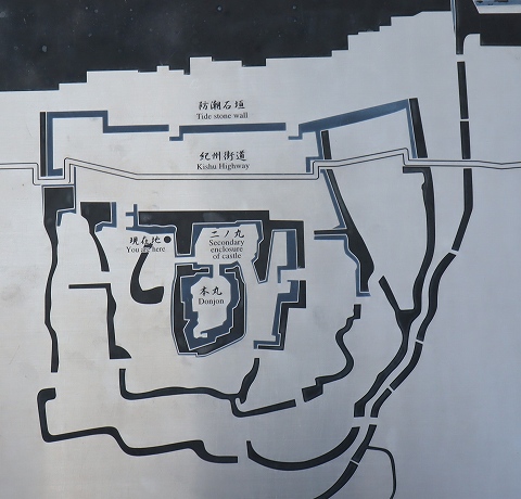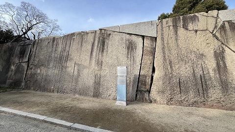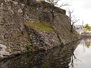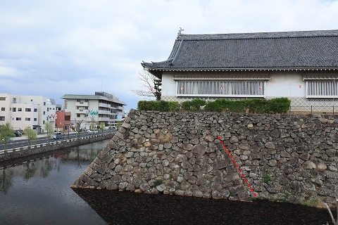 二の丸の北西のこの石垣の上に、伏見城から移築されたという伏見櫓が建っていたそうです。 |