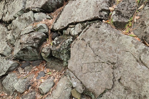 この松の丸櫓台の石垣は角だけが花崗斑岩で他は和泉砂岩だそうです。