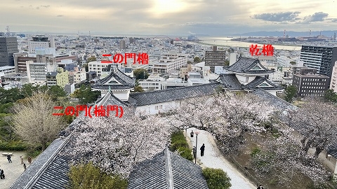 大天守、小天守、乾櫓、二の門櫓、二の門を多聞によって連結させているのが下の写真と合わせてわかります。