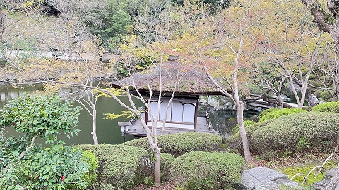 江戸時代初期に西の丸御殿とともに造られた日本庭園で、紅葉渓庭園とも呼ばれる藩主の隠居所でした。