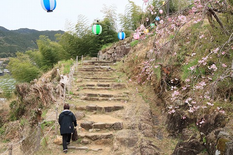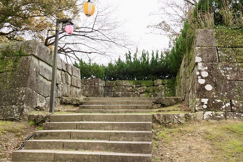 途中から江戸時代からの大手道が残っています。現在は下からまっすぐに登ってきましたが、元々はマップ(28)の二ノ丸側から登ってきてクランクしてこの道につながります。