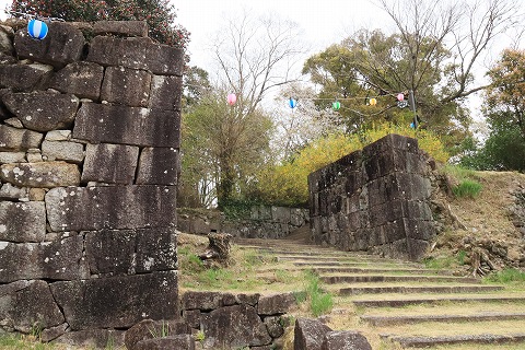 本丸の入口の門で、巨石を使用した切込みハギの石垣です。