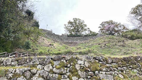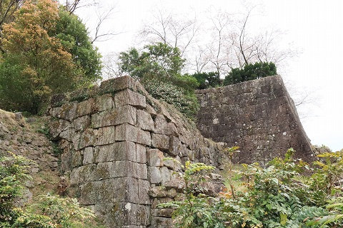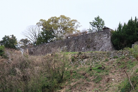 水ノ手曲輪から見る鐘ノ丸の石垣。