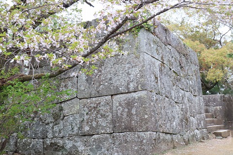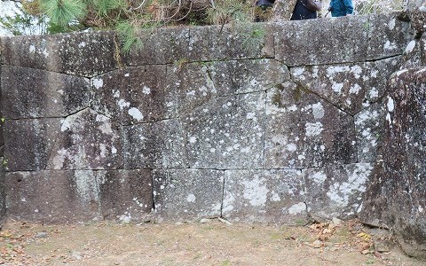 この石垣は切込みハギで、徳川期の17世紀後半から18世紀前半のものです。熊野の花崗斑岩が使われていることもあります。