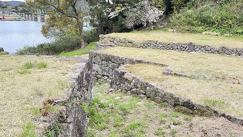正保城絵図「紀伊国新宮城之図」によると、城山には、天守台と本丸、分離した出丸、鐘ノ丸、松ノ丸があり、西側の山麓には二ノ丸、また、水ノ手の船着き場まで上下連郭式に配置され、現状とほぼ同様の構造が描かれています。