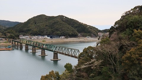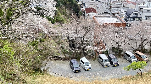 わかりずらいですが、写真の真ん中に紀勢本線の線路があり、駐車場の下にあるトンネルに入ります。