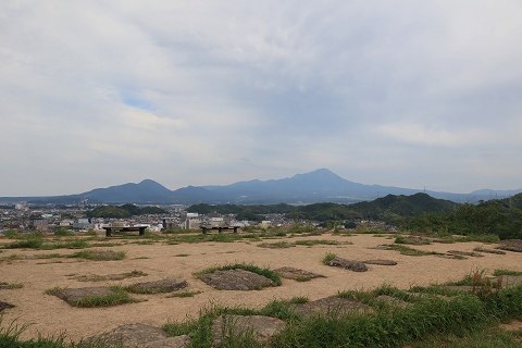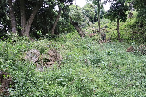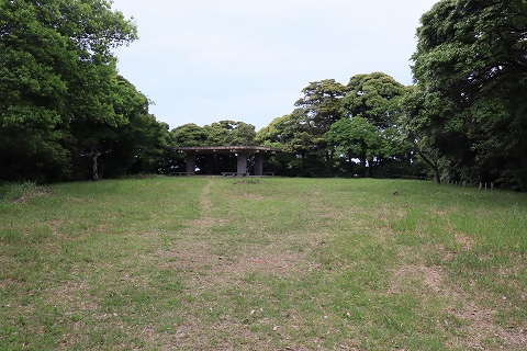現在は駐車場等になっている三の丸から見た二の丸。 |