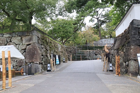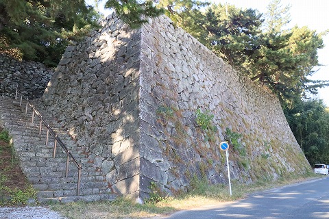 巽櫓の櫓台石垣を東側に回り込んで見た写真。 |
