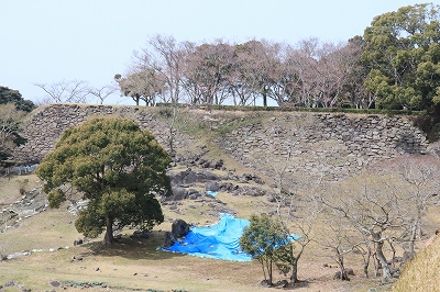 石垣が崩れているのは、風雨によるものではなく、徳川家康が人為的に壊したものだそうです。