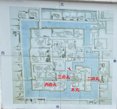 1726年の大火後、二の丸を再建し藩政は二の丸を中心に行われました。しかしまたもや1835年の火災で二の丸が消失しました。