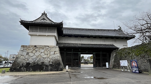 1838年に建てられた現存遺構で、屋根の両端に青銅製の鯱が載っていることから「鯱の門」と呼ばれています。