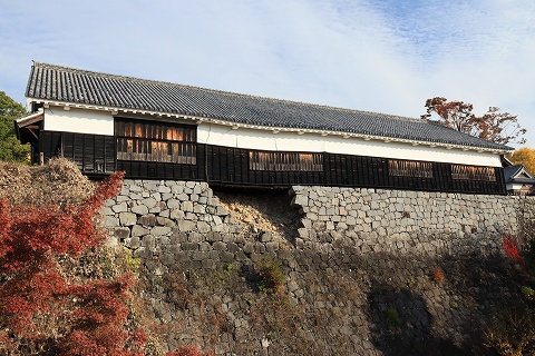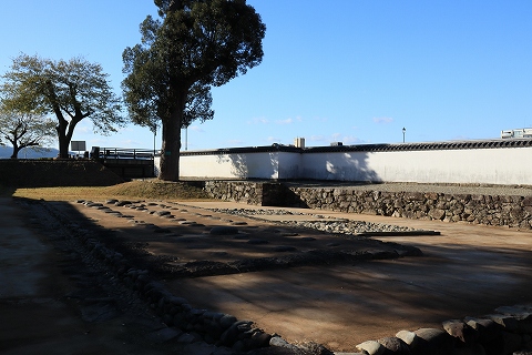 水ノ手門西側長塀と間蔵(米蔵)跡。